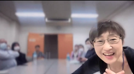 今回は、第7回日本ユマニチュード学会総会開催時にあわせての実施としたため、会場の東京医療センターで対面参加する方、そしてオンライン参加する方と、ハイブリッド形式で行いました。