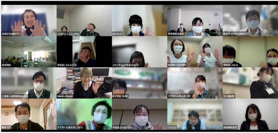 今月は、「評価基準に具体的には書いていない基本的なケア、環境設定」をテーマに、ケアホーム西大井こうほうえんの田中様、沼上様に、ユマニチュードの心豊かな実践についてお話しいただきました。