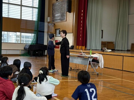 2025年11月26日(水)、小笹小学校で、4年生155名を対象に体育館で講座を実施しました。講師は地域リーダーの松永佳子さん。ご自身のお子さんも通っていた小学校であるという親しみと、マイクを使わず大きなジェスチャーで語りかける話しぶりが、児童との距離を自然と縮めていました。児童たちからは、「お家の人にもユマニチュードを教えたい」「おじいちゃん、おばあちゃんと話すときに、今日習ったことを思い出してやってみたい」といった声があがっていました。