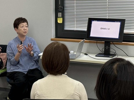 2025年11月14日(金)、市内の民間企業(東京海上日動メディカルサービス株式会社)でもユマニチュード講座が行われました。「電話対応の業務でも、寄り添う姿勢や考え方としてユマニチュードを活かせそう」「仕事だけでなく家族介護にも使いたい」「家族にはなかなか優しくなれないが、技術として取り入れてみたい」といった声が聞かれました。講師を務めた地域リーダーの松永佳子さんは、看護学校の講師であった当時、専門知識では家族介護がうまくいかなかった、辛い思いをした経験を振り返り、「その時にユマニチュードを知っていれば」という切実な思いが、現在ユマニチュードを伝える原動力になっていると語りました。